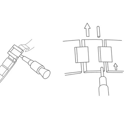 Next, place the bracelet in the adjustment tool so the pin can be pushed out in the correct direction. Make sure the tool is aligned precisely with the pin hole, as misalignment may cause the pin to bend or break.